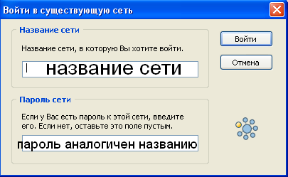 Появляется окно. Там нужно ввести название сети и пароль к ней. Как только заполняется одна сеть, мы создаем следущую. Пароли к сетям аналогичны названиям, тоесть